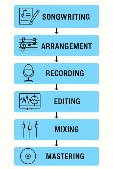 Everything you need to finish your song and potentially send it to radio or streaming services is here. Our focus is on recording, editing, and mixing.